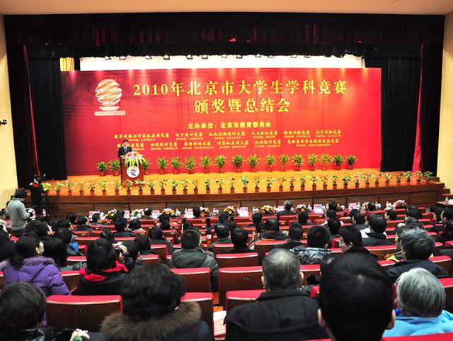 1月7日,2010年北京大学生学科竞赛颁奖暨总结会在中央财经大学隆重举行。我校继去年参加首届北京市大学生化学实验竞赛并荣获两项二等奖以来,理学院化学实验中心对此项竞赛非常重视,积极宣传、动员、组织、培训参赛团队。今年,在学校教务处和理学院的大力支持和指导下,理学院化学实验中心组织了4只队伍参加第二届北京市大学生化学实验竞赛并全部获奖。