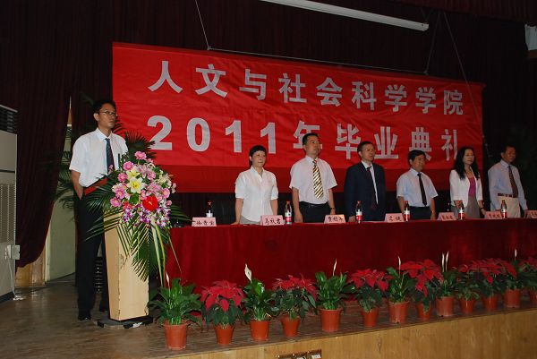 6月20日上午,ob真人人文学院2011年毕业典礼暨学位授予仪式在7号楼报告厅隆重举行,全体院领导、教师代表和学生亲友代表出席,全体2011届本科毕业生参加了此次活动。活动由学院党委副书记、副院长徐贵宝主持。