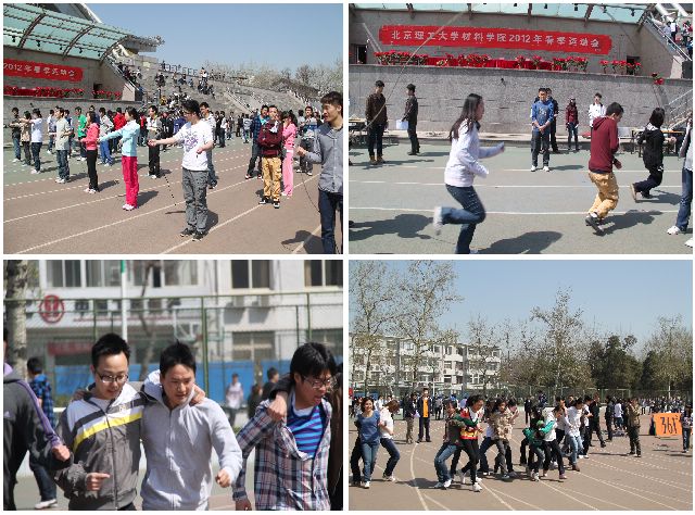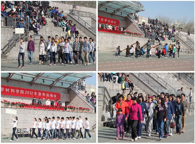 4月7日上午,材料学院2012年春季运动会在东操场顺利举行。材料学院党委书记 陈鹏万,常务副院长刘颖,副院长曹传宝,副院长李树奎,副院长庞思平,副书记副院长张舰月出席了开幕式。材料学院教职工、中关村校区本科生、研究生以及良乡校区基础教育学院理材学部材料学院的本科生参加了本次运动会。
