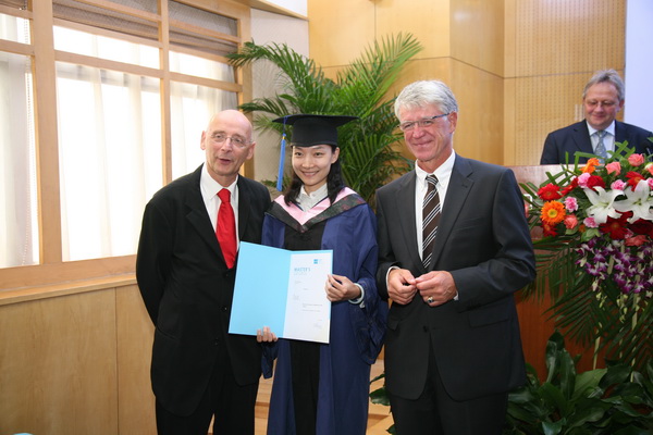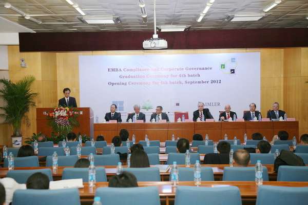 2012年9月7日下午,在我校国际教育交流大厦三层报告厅隆重举行我校与德国康斯坦斯应用科学大学合作为国际著名奔驰汽车生产商戴姆勒公司举办的EMBA项目第四期毕业典礼暨第六期新生开学典礼。出席典礼的嘉宾有:ob真人竞猜副校长孙逢春教授、戴姆勒东北亚地区首席财务官Helmut Ruhl先生、戴姆勒东北亚投资有限公司执行副总裁Matthias Zeuch先生、因戈尔斯塔特应用科学大学Thomas Doyé教授、康斯坦斯应用科学大学Josef Wieland教授、康斯坦斯应用科学大学继续教育部部长Roland Luxemburger先生、我校国际教育合作处王庆林处长、国际教育合作学院梅文博院长、罗佳书记、第四期全体学员和第六期新学员。典礼由梅文博教授主持。