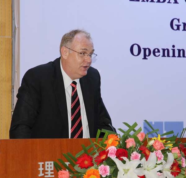 戴姆勒东北亚地区首席财务官Helmut Ruhl先生对毕业生表示祝贺。他回顾了该项目的合作历史。他说:作为跨国企业,戴姆勒公司希望与EMBA项目所有毕业生一起为促进戴姆勒实现2020年任务目标贡献力量。