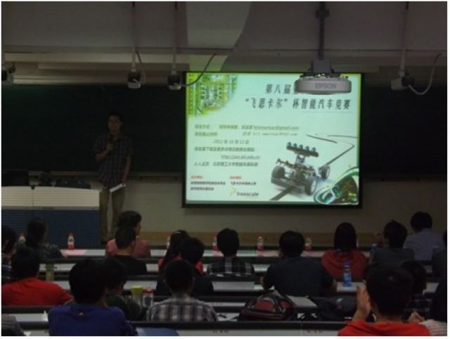 教务处副处长曹峰梅老师,智能车俱乐部指导教师、机械与车辆学院张幽彤教授,自动化学院副院长廖晓钟老师,机械与车辆学院副书记、副院长范文辉老师,第六届和第七届智能车俱乐部成员,第八届智能车俱乐部指导团队代表以及我校广大热爱智能车的同学们参加了宣讲会。