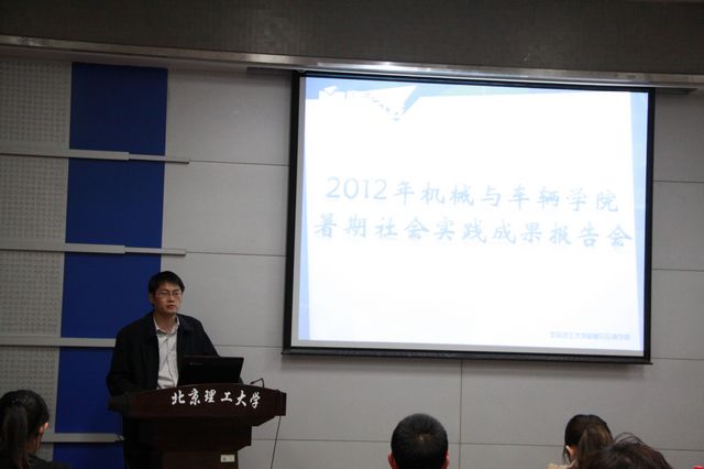 为全面总结和回顾我院2012年大学生暑期社会实践工作,号召更多的学生关注并参与学校寒暑期社会实践活动,ob真人竞猜机械与车辆学院于2012年10月18日在车辆实验楼二层报告厅举办了2012年暑期社会实践成果报告会。校团委副书记周明宇老师、学院团委副书记王玮瑜老师、曹冬旭老师、吉雅太老师、金海鑫老师出席报告会,学院2010级学生干部代表也参加了此次活动。