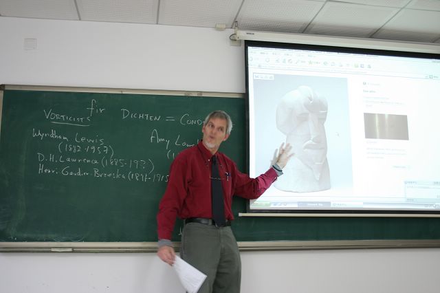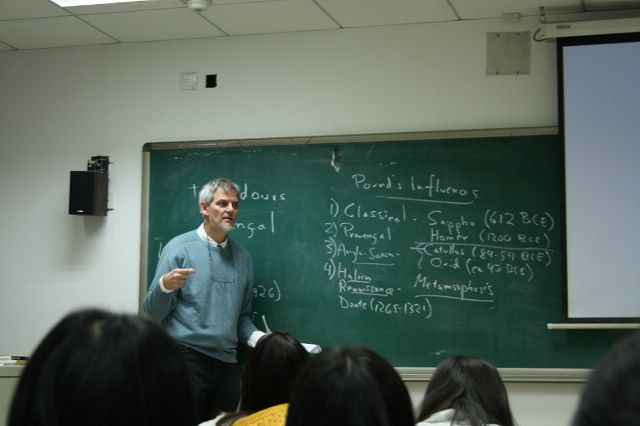 Gery教授在现代主义诗歌系列讲座中重点讲授了英语意象派诗歌。他系统介绍了20世纪上半页美国新诗运动发展的情形,以独特的视角对美国现代诗歌巨匠埃兹拉•庞德和T•S•艾略特的诗学进行了深入的剖析,重点阐述了庞德的诗学对英美现代主义和后现代主义诗歌的影响。他认为,庞德早期的意象主义诗歌和翻译对美国新诗的发展产生了重大影响,庞德中后期的诗学(漩涡主义和象形文字法)和《诗章》对20世纪60年代以后的后现代主义诗歌(黑山派、语言诗派、纽约诗派、垮掉诗派等)产生了深远的影响。此外,Gery教授还详细阐释了庞德诗歌中的中国元素以及中国诗学和儒家哲学对庞德的人文思想和文学创作的重大影响。