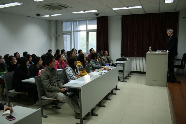 应外国语学院王贵明教授邀请,美国新奥尔良大学教授、国际埃兹拉•庞德研究学会主席、意大利埃兹拉•庞德研究中心主任、美国著名文学评论家、诗人及诗歌翻译家John Gery先生于2012年10月14日至26日在我校进行了为期两周的讲学和学术交流。在此期间,Gery教授分别在我校中关村校区和良乡校区以“美国现代主义文学”、“文学翻译”为主题,为外国语学院师生做了精彩的系列学术讲座,并与外国语学院领导和教师就教学、科研及国际合作办学等方面进行了座谈。