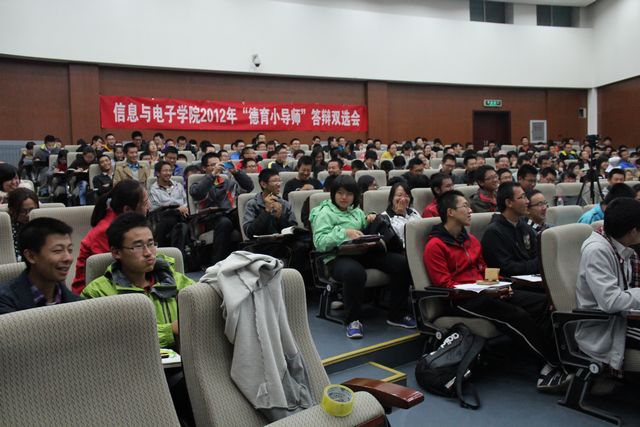 信息与电子学院2013届“德育小导师”工作启动于今年10月份,截至目前完成了自由申报和答辩双选两部分工作内容。之后,学院将对答辩双选会的评分进行统计,并根据大家意见确定各班的“德育小导师”名单。信息与电子学院将一以贯之致力于“以‘德育小导师’制度建设为载体,构建大学生朋辈教育体系”,充分发挥优秀学生群体的标杆作用,强化其带动和辐射功能,以形成良好的共振和扩散效应,进一步发挥大学生优秀朋辈群体的榜样示范、激励、约束和自我教育功能,进行教育实践创新,逐步构建具有时代特色的学生自我教育新体系。