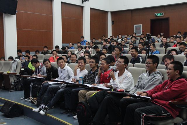 双选会答辩主要分为两部分:先是由候选人进行5分钟的自我展示,然后有1分钟的评委提问时间。按照抽签顺序,杨闻迪、姜文等20名09级“德育小导师”候选人一一上台进行了自我展示。他们个性鲜明,各有特点,但相同的是,他们都成绩优异、德才兼备。李琤和曹玉树同学独树一帜,将自己比作产品,将自我展示形象生动地转化为一场产品推销会;身为国防生的何国锋,一声呼唤令在场的国防生们精神抖擞,以一个标准的敬礼结束更是赢得了同学们热烈的掌声;李丽日同学放弃保研而出国的信念引发了同学们对理想的思考;陈彦如同学从学习、双学位、ob真人、实习到出国的丰富经历更是引发了同学们的广泛交流……20位小导师候选人精彩纷呈的自我展示,引发了12级同学们的阵阵感叹与共鸣。为了让同学们与小导师候选人展开更充分的交流,会议特地增加了自由提问环节,在场每一位同学都可以自由向任一位晓导师候选人提问。同学们与小导师候选人从出国、ob真人、学习与生活各方面展开了又一轮热烈的交流讨论。在愉快的讨论中双选会也接近了尾声,小导师们都留下了自己的联系方式便于与12级的同学们继续展开交流。