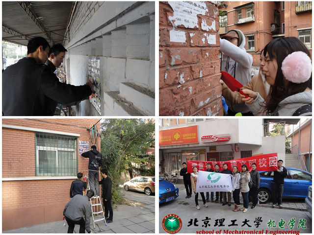 2012年11月11日,学院青年志愿者协会与10级弹药团支部一起来到ob真人竞猜家属院社区,帮助清理社区墙面上小广告和违规粘贴的宣传资料。当天早上,大家冒着严寒,用小铲子和矿泉水瓶作工具,一丝不苟地清理墙面上的广告,遇到不方便使用小铲子的地方,同学们便直接用手去清理。经过一上午努力,社区墙面恢复了原来的整洁。看着整洁的墙面,同学们冻得通红的脸上露出开心的笑容。