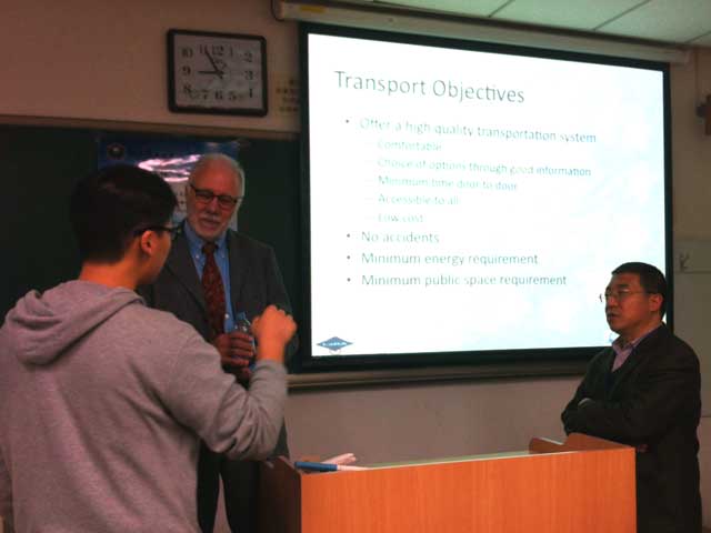 本次学术讲座由交通运输工程系高利教授主持,他向大家介绍了Michel教授的学术研究工作及杰出成就,表达了我们热烈的欢迎与由衷的感谢。两个小时的报告中,Michel教授凭借对专业知识的了解以及丰富的经验,向同学们展示介绍了交通运输的发展,以及随着信息与通信技术的迅速发展和移动电话的广泛传播,新的交通方式所呈现出的未来前景。通过图片、视频效果,以及Michel教授声情并茂的讲解,展示了新时代条件下交通方式给我们带来的福利,包括更少的环境污染和更多的利用空间等,分析了信息与通信技术对城市公共交未来发展的影响,鼓励我们投入到该方向工作当中去。讲座过程中Michel教授与同学们进行了互动交流并耐心认真的回答了同学们的问题。