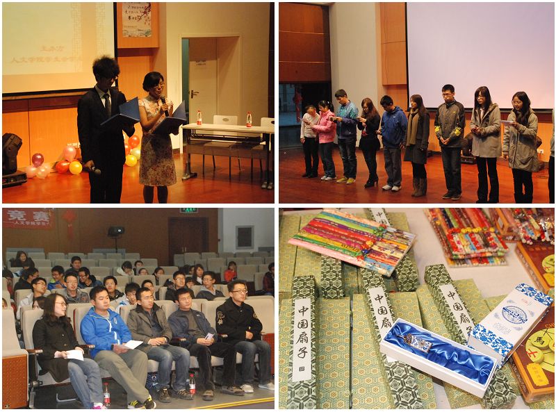 竞赛决赛于11月18日晚六点半在综合教学楼报告厅举行,人文学院辅导员王群超、北京人文知识竞赛三等奖得主缪宜航、校人文知识竞赛领队卞秋实、人文学院学生会主席钱诚以及管院学生会副主席柴一栋共同组成评委团,进行评审工作。