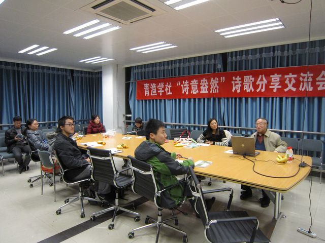 秋天,处处散发着诗的气息。在这个溢满诗意的季节里青渔诗社经过筹划特于2012年11月23日在五号楼712会议室举行“诗意盎然”诗歌分享交流会,交流大家对诗的感悟,诉说苦衷,分享快乐,阐述每个人独特的人生观。