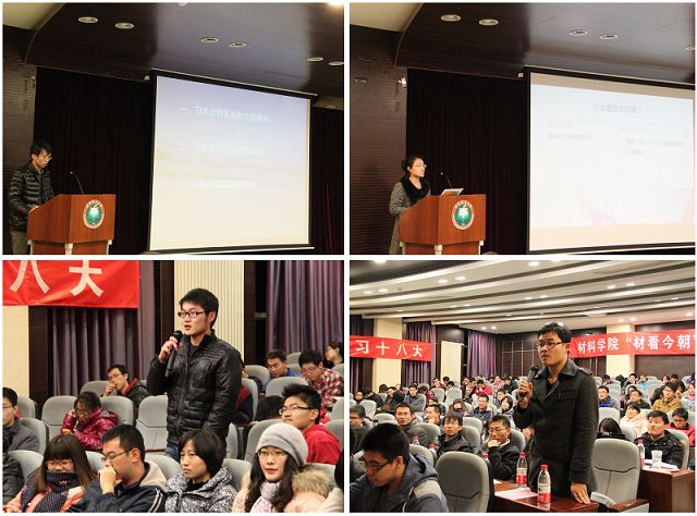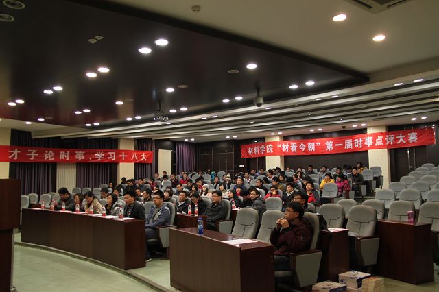 2012年12月1日晚7点,由材料学院团委、材料学院学生会和材料学院求实学会共同主办的材料学院“材看今朝”第一届时事点评大赛在研究生楼报告厅隆重举行。此次活动共有七支队伍参赛,分别就十八大政策、钓鱼岛问题及南海问题展开了十分精彩的演讲,并取得了优异的成绩。材料学院党委副书记、副院长张舰月老师出席了本次活动。
