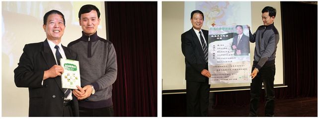 生命学院党委副书记、副院长周连景代表所有现场人员赠送魏振武先生活动的海报和《校园植物志》表达对魏振武先生的敬意和谢意。