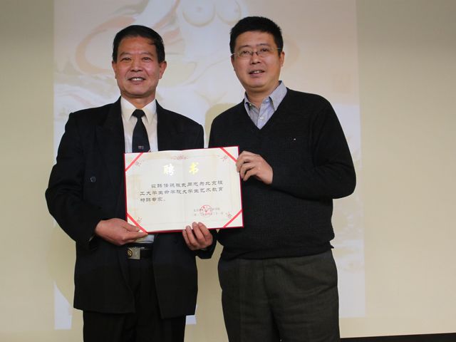 最后,生命学院党委书记李汉军给魏先生颁发了“生命学院大学生艺术教育特聘专家”聘书。魏先生对艺术文化有着深刻独到的见解,先生对我校师生进行长期的帮助和指导将对我校营造优秀的校园文化,熏陶同学们的艺术气质起到重要推进作用。