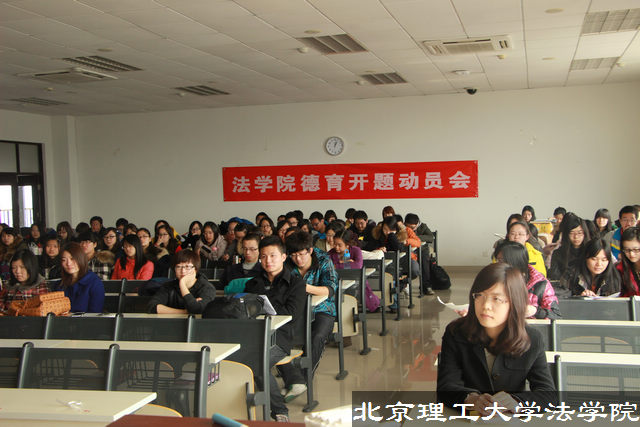 2013年3月21日,2012级法学院德育开题动员会在良乡校区综教A-301教室召开。学院党委副书记副院长张巍、学院团委副书记韩笑、2010和2011级学长代表及2012级全体同学参加了此次动员会。