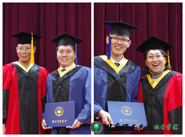 机电学院2013届春季研究生毕业典礼顺利结束。典礼后,由学院院长焦清介和党委书记栗苹为毕业生授予学位并合影。