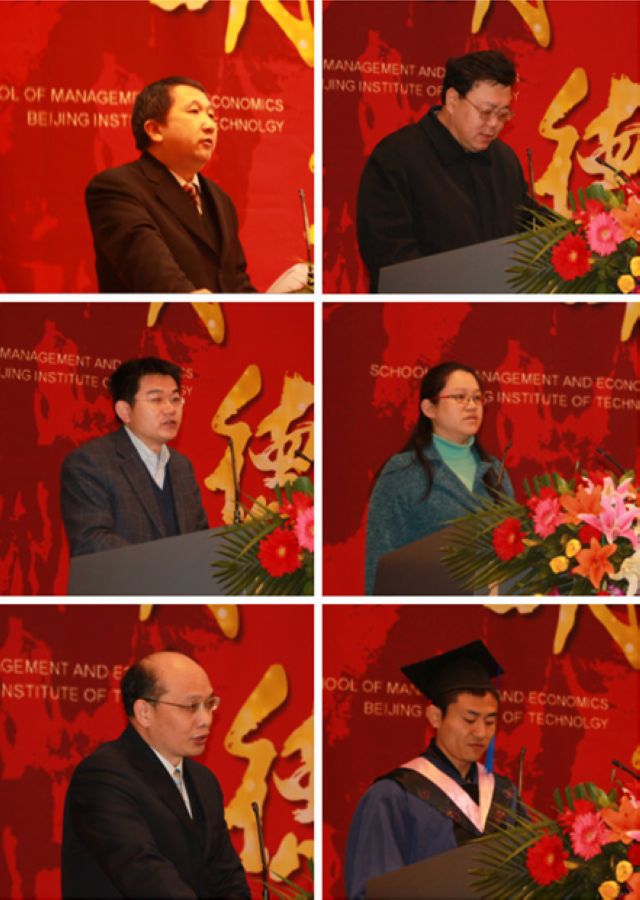 朱东华副院长代表学院向毕业生致辞,对各位毕业生表示了由衷的祝贺和美好的祝愿。同时,教导毕业生们要热爱科学、播撒科学的种子,叮嘱即将踏上工作岗位的同学们要远离浮躁,守护科学这一神圣的净土,守护博士硕士这一神圣的学术荣誉,扎扎实实做好学问,把握中华民族伟大复兴这一历史性契机。孔昭君副院长宣读了学位授予决定。王兆华副院长宣读了优秀毕业生名单。周毕文副教授作为教师代表发言,富有激情的演讲,赢得了毕业生们的阵阵喝彩。硕士生刘猛作为毕业生代表发言。他首先与大家分享了在ob真人竞猜两年半的学习生活所带来的收获。然后他代表所有毕业生向培养他们的母校和管理与经济学院、各位老师,向养育他们的父母表达了衷心的感谢,向所有毕业生表达了殷切的祝福。