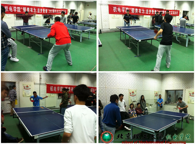 三月草长,春意渐浓。机电学院2009级本科毕业生用他们的激情为我们演绎了一场精彩的乒乓球赛。3月30日、31日在体育馆地下乒乓球场,机电学院举办了毕业生乒乓球比赛。经过激烈的淘汰厮杀,最终09级弹药班以较大优势摘得桂冠,本硕博、机电二、机电一分别列获二三四名。辅导员王鹏翔老师也在比赛现场为各班级加油助威,毕业生各班级均派出了运动员和拉拉队参与了本次比赛。
