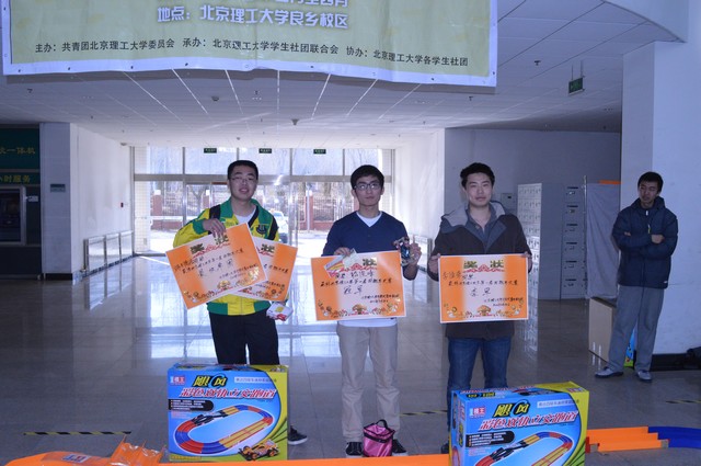 3月24日下午5点,随着最后一名选手比赛的完毕,本届“四驱车大赛”也随之渐渐拉下帷幕。经过工作人员的计算、统计,选出总用时最短的前三名以及单圈最快的选手。通过这次比赛,唤起了大家美好的童年回忆,让选手们在繁重的学习生活外,放松自己,在欢呼中度过一个周日,无论胜负,都受益匪浅。