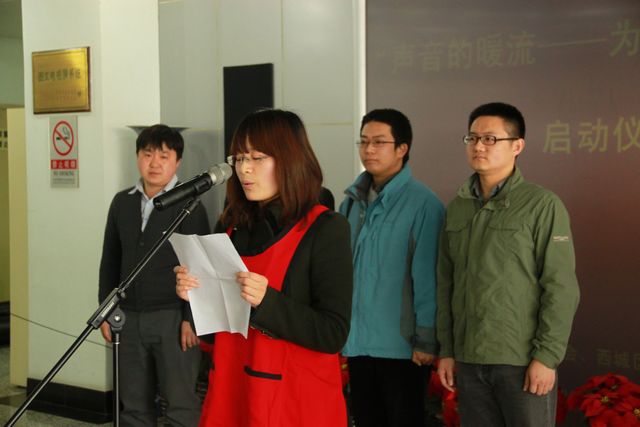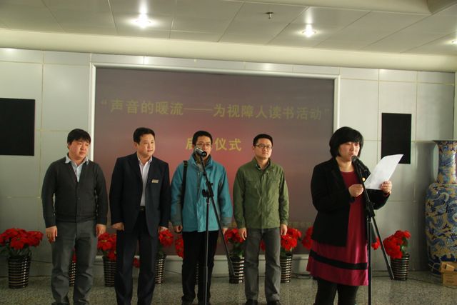 活动的一开始召开了“声音的暖流——为视障人读书活动”启动仪式。西城图书馆馆长阎峥、西城区残疾人文化体育活动中心主任温小龙、ob真人管理与经济学院研工委书记梁昊、文化部全国公共文化发展中心资源建设处陈旭、西城图书馆干部石苏、管理与经济学院第一期研究生志愿者苏雪琴、任昆、徐洪汉戎出席仪式。