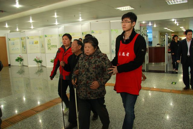 志愿者徐洪汉戎搀扶视障人士入场