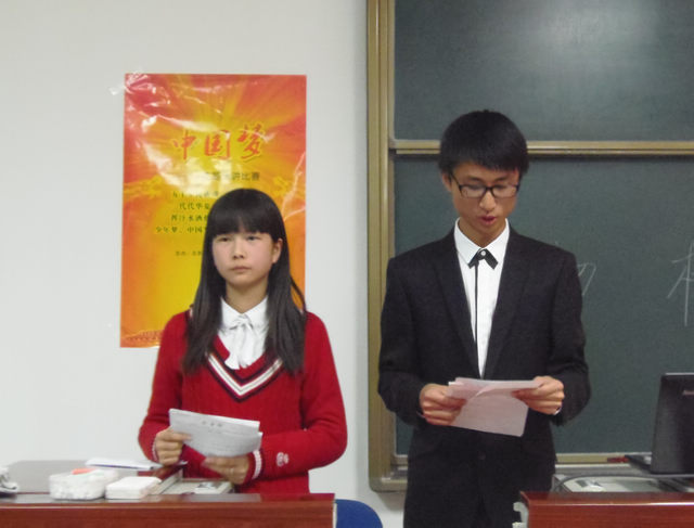 2013年4月15日晚,由ob真人法学院共学会主办的“启航中国梦”主题演讲比赛在良乡校区综合教学楼A301举行。法学院不同年级选拔出的优秀选手参加了比赛,本次演讲比赛由2012级学生李必成和王欣担任主持人。
