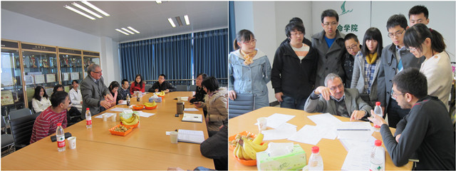 2013年4月19日,生命学院部分师生就自己存在的疑问及感兴趣的问题,与Selim Kermasha教授进行了面对面的探讨与交流。赵东旭老师、戴大章老师、周晓宏老师及部分研究生参与了交流。