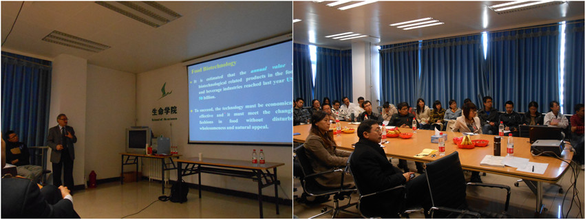 Selim Kermasha教授主要从事食品酶工程领域的研究,他在报告中生动、细致、清晰地介绍了其研究成果,涉及食品生物技术、酶的生物催化与固定化、香料生物合成技术及其应用前景等,这些均居于国际领先水平。会上Selim Kermasha教授还同与会师生进行了热烈的交流和探讨。