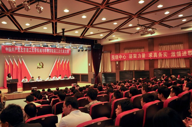 5月10日上午,中共ob真人机械与车辆学院第三次代表大会在七号楼报告厅隆重召开。报告厅内的气氛隆重而热烈,正式代表、特邀代表等与会人员精神饱满地参加了会议。经民主选举产生的150名党员代表出席了此次大会。同时会议还特邀了教代会代表、党外人士、系部中心负责人、离退休支部书记等出席了大会。学院上一届党委委员:丁洪生、马树元、王义春、左建华、李晓雷、项昌乐、阎艳等在主席台就座,校党委组织部部长张笈出席了大会。会议由学院党委副书记副院长范文辉主持。