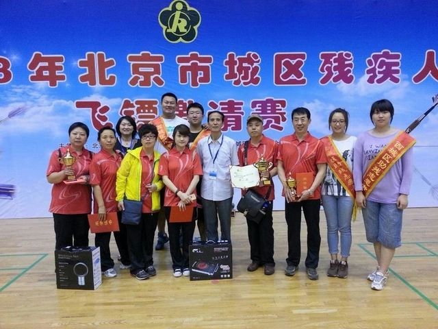 2013年5月31日,首届“北京市城区残疾人飞镖邀请赛”在月坛体育馆拉开帷幕,本次活动由北京市残联主办,分为肢体残疾组和听力语言组等。全市共七个残联的运动员代表参加了此次比赛。管理与经济学院2011级体育班学生王金浩、李思颀、贾一宁、朱燕四名同学参加了赛事的志愿服务活动。同学们作为赛事的志愿者,以积极的态度,饱满的热情投入到赛事服务中来,分别负责帮助残疾运动员检录、引导残疾运动员入场等工作。