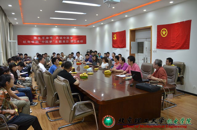 2013年6月5日,机电学院举办“师生手牵手 共圆中国梦”特色主题党日、团日活动。机电学院党委副书记、副院长杨瑞伟、机电学院团委书记章涛、探测与控制工程系党支部党员代表和2010级探测制导与控制技术班团支部全体团员参加。会议由探测与控制工程系副主任宋承天主持。