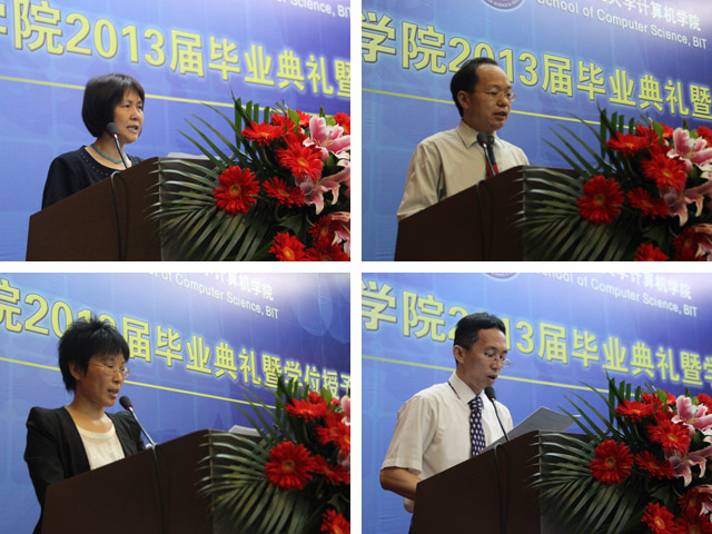 随后,牛振东副院长宣读了《计算机学院2013届毕业生名单及学位授予决定》,郑军副院长宣读了《计算机学院2013届校级优秀学位论文获得者名单》,郭彦懿书记宣读了《计算机学院2013届优秀毕业生名单》。