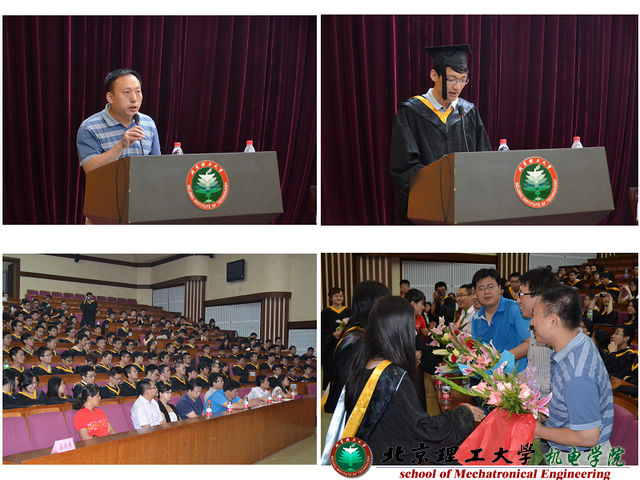 随后,学院党委书记栗苹老师宣读表彰ob真人以及北京市优秀毕业生的决定,栗苹老师也对其他同学表示了祝福,希望大家再接再厉共创辉煌;由学院副书记副院长杨瑞伟老师宣读机电学院本科、硕士、博士生的毕业决定。