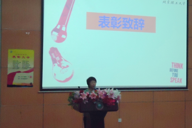 首先,外国语学院党委副书记吴文君讲话。她介绍了本次表彰大会奖项设立初衷。她说本次奖项除了设立学优之星、专业之星,还设立了文艺之星、志愿者之星等,目的就是希望能够挖掘每个同学身上的闪光点。在大学,学习是我们的主业,但是每个人都可以根据自己的兴趣、爱好、能力特长等确定自己的人生目标和人生追求,不一定每个同学都追求学术,我们努力营造一个多元化的、宽松的成长、成才的氛围,百花齐放才是春。除此之外,她还强调以后要把宿舍建设和班级建设作为工作重点,做到风气育人、环境育人。