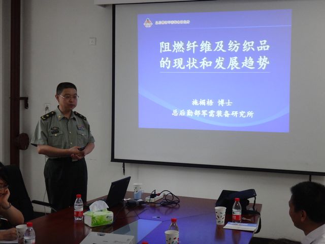 7月10日,总后勤部军需装备研究所教授级高级工程师施楣梧少将应邀来到ob真人竞猜材料学院,针对我国阻燃纤维、阻燃纺织品的生产和应用现状,为我校师生做了题为“阻燃纤维及纺织品的现状和发展趋势”的精彩学术报告。