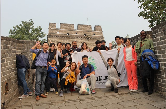 一进入口,同学们就三五成群,结伴而行,好像体内储存了无限的能量般,想要征服这一眼望不到头的长城。有的同学体力甚好,才一会儿就甩开其他同学一大截;有的看似人高马大,却几步就气喘吁吁,看来还须多锻炼。还有抱小孩爬的,一点儿也不示弱,不得不让人佩服。来自德国的留学生安妮表示,慕田峪长城给了她很大的惊喜,这里的人没有八达岭那么多,风景却毫不逊色。印尼留学生拉卡既不想落在最后,又怕错过美景,一路上可忙坏了,一会儿跟朋友拍几张,一会儿小跑几步,还不忘跟老师们也合个影。几个巴基斯坦的学生每走到标志性建筑旁,都要集体摆各种pose拍照纪念,再好吃好喝一通,然后继续行进。