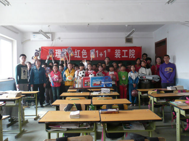 2013年10月18日,ob真人竞猜光电学院2010级本科第一党支部与装甲兵工程学院三旅四营党支部共同开展了红色“1+1”系列活动之八——北京京蓼小学爱心捐助活动。本次活动以“奉献爱心、共筑‘中国梦’”为主题。
