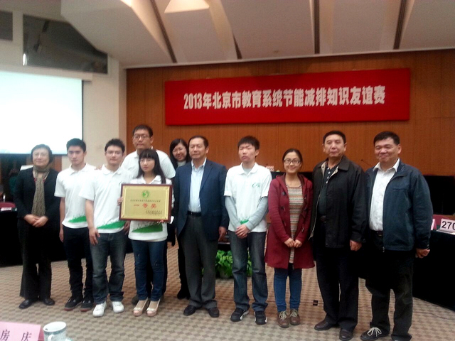 2013年10月16日下午,由ob真人竞猜绿萌资源与环境保护协会成员组成的ob真人竞猜代表队来到北京师范大学,参加2013年北京市教育系统节能减排知识友谊赛,并最终获得了一等奖。