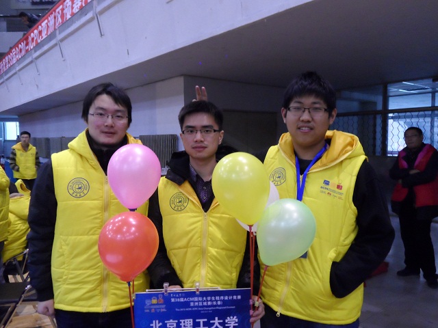 12月8日,经过五个小时的激烈角逐,由我校傅天晓、苏琛、陈翔组成的BIT_Is_a_Tree队夺得2013ACM/ICPC长春现场赛的银牌。本次比赛按照ACM-ICPC竞赛规则,比赛题目全部采取英语命题方式,要求选手现场编程、实时提交、系统在线评测。同时,比赛涉及知识面广泛,对于高效算法的选用、代码编写的精准、程序调试的快捷以及团队合作精神有着很高的要求,参赛选手要掌握较为全面的计算机理论知识。