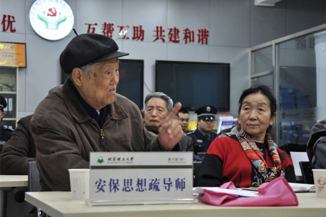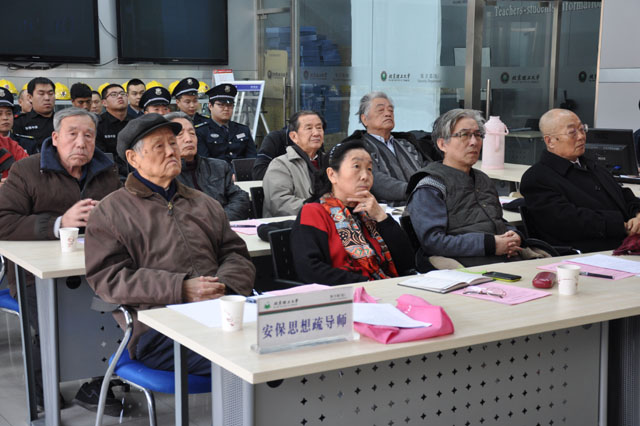 首先,代方震同志向各位思想疏导师长期以来对校园安保工作的大力支持表示了衷心的感谢!保卫处近几年一直寻求以“管理创新、服务创优、科技创先、服务创安”为核心,以组织放心,群众满意为目标开展工作。2010年与离退休教职工党委协同成立了“ob真人同心”创先争优党建工作,在各位思想疏导师的指导、支持、关怀和帮助下取到了很多的成绩,受到师生员工的好评,得到校党委、北京市教工委的肯定。