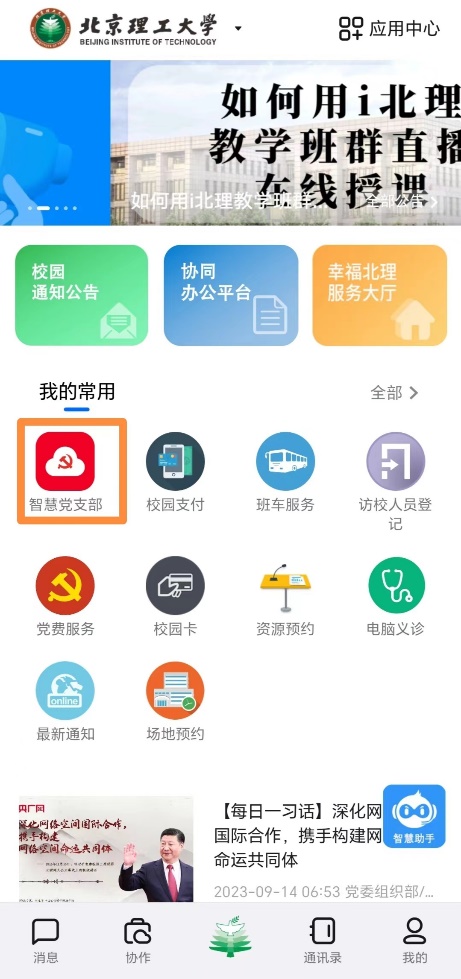 2. 登录入口:PC端:输入http://zhdzb.bit.edu.cn/或通过组织部网站“慧支部”平台入口进入。