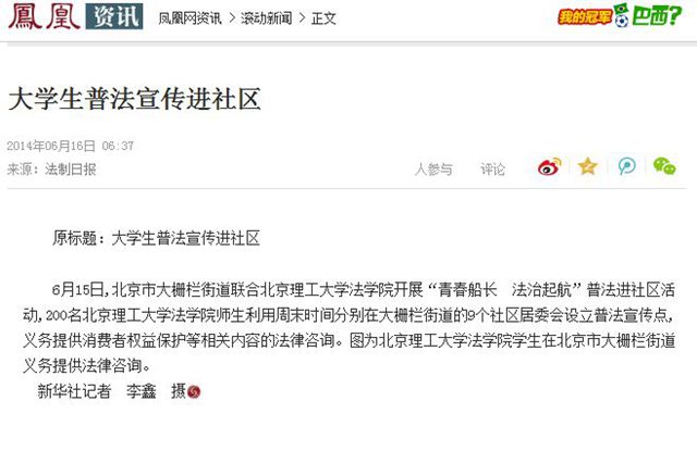 法制日报:http://epaper.legaldaily.com.cn/fzrb/content/20140616/Articel01006GN.htm