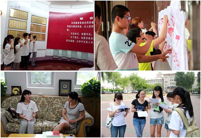 今年恰逢抗日战争胜利70周年,理材学部实践团一行8人赴东北开展了主题为“抗战文化的保护和推广策略”的社会调研。持续八天的活动包括了传统的实地参观、人物访谈等环节,也囊括了主题签名、理论学习等形式较为新颖的题材。同学们的足迹遍布了包括中国抗日战争纪念馆、九一八历史博物馆、东北烈士纪念馆等在内的11个红色景点。最终,实践团累计收回有效问卷378份,调研目标覆盖了不同年龄阶段和社会职务的人群。活动开展过程中,实践团还有幸采访了九一八博物馆馆长范丽红,了解最前沿的红色遗址保护措施。9月,实践团撰写了《东北三省红色遗址保护现状及影响因素研究》。目前该调研报告正在投稿发表的过程中。