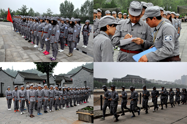 8月16日,实践团抵达武乡实践基地,换上八路军服,举行了开营仪式。开营仪式首先由实践基地负责人向实践团代表授旗,光电学院辅导员宋若鹏代表带队老师讲话,通过自己的切身感受,鼓励同学们多体验、多收获。实践团员潘霞代表实践团员表态:服从实践安排,认真完成实践任务。开营仪式后,实践团进行了具有八路军特色的团队建设和素质拓展活动。红色实践正式展开。