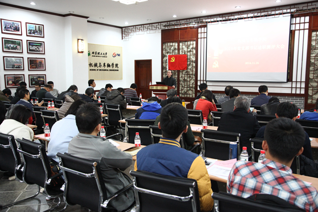 随后,左正兴对党支部的述职进行了点评和总结发言,要求教工党支部书记在履行基本职能的前提下,发挥核心推动作用,提升支部成员的党性修养,追求更完美的人文素质以适应“双一流”建设;要求学生党支部书记严格按照党员发展条例的规定努力做好积极分子选拔和培训工作,确保党员发展的高质量和规范性。最后,张笈部长针对本次述职大会发表讲话,对机械与车辆学院的支部设置、党建活动、支部书记的基本职责履行情况、党员带头作用的发挥情况等予以肯定。同时也指出了述职报告中存在的一些需要改进提高的问题,建议研究生党支部与对应的研究所教工党支部能够增加互动,开展特色的支部共建活动。同时强调,党支部要更紧密地结合教工和学生的主体任务来计划和安排支部的各项活动,带动广大师生凝心聚力,发挥好党员的带头作用,扎实推进“双一流”建设,为学院、学校的发展贡献力量。