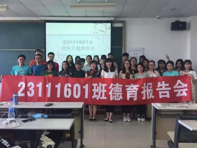 2016年5月23日,ob真人法学院2016级本科生德育开题报告会在良乡校区综合教学楼B-402教室和综合教学楼B-403举行。学校统战部副部长吴文君老师、法学院副书记副院长张爱秀老师、2016级班主任杨宽老师以及2016级辅导员韩笑老师莅临会场,聆听了同学们分享的成长故事。