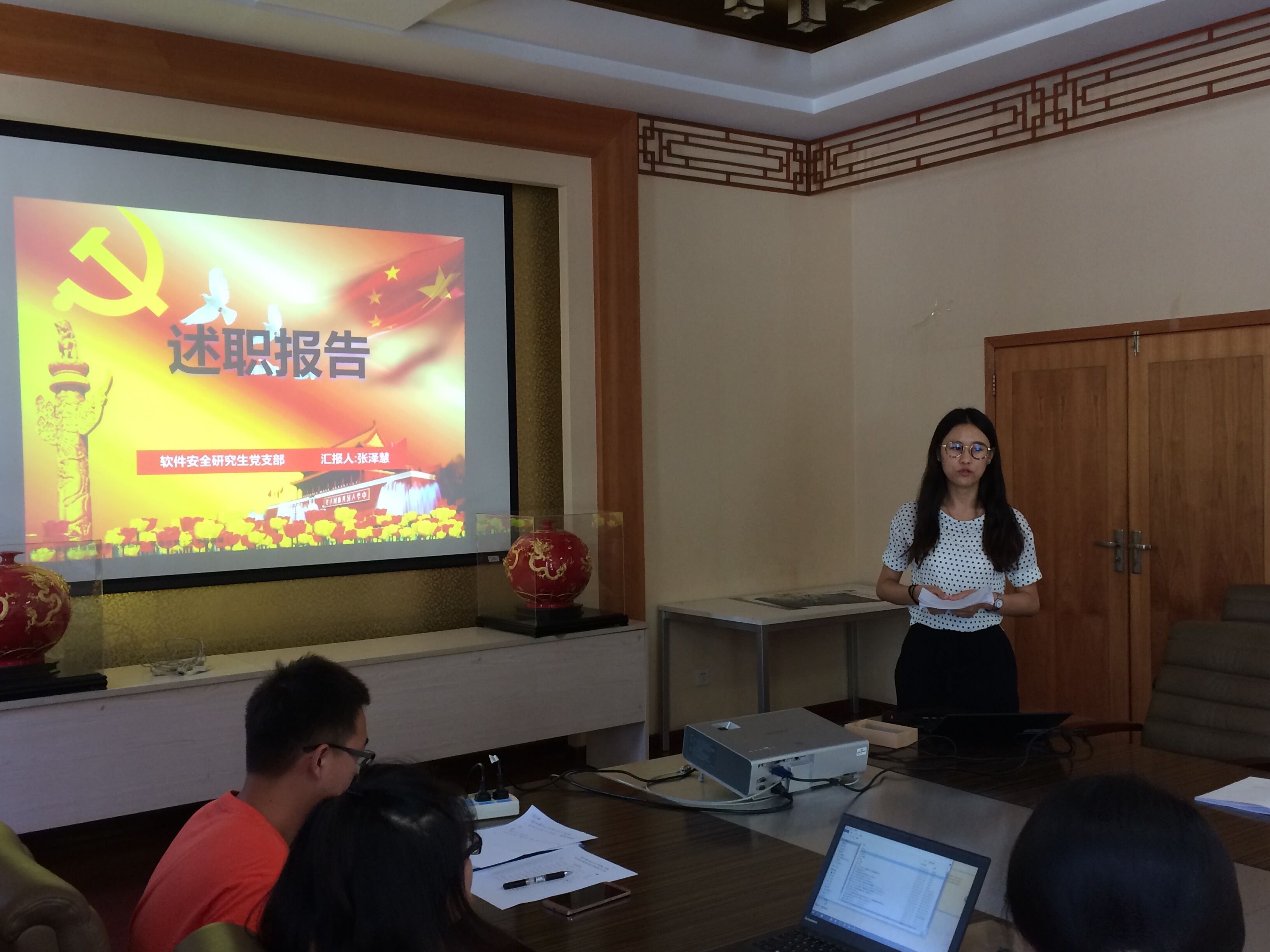 软件学院本学期对研究生党支部进行了改革,打破原有以班级为单位划分的组建方式,将博士党员、硕士一年级党员以研究所为基本单位设立研究生党支部。因此在此次述职中,调整后的党支部重点介绍了在促进实验室建设方面的工作。各系所研究生党支部邀请实验室老师、同学,围绕实验室学术氛围建设、实验室安全卫生建设、实验室集体凝聚力建设等展开讨论。根据讨论结果,各研究生党支部开展了夏日解暑、羽毛球比赛、实验室大扫除、科研大讨论等活动,促进实验室人文氛围建设及实验室学术氛围建设。通过交流汇报,各系所的研究生党支部相互借鉴,对下一步工作开展有了更活泼、更实在的构想。