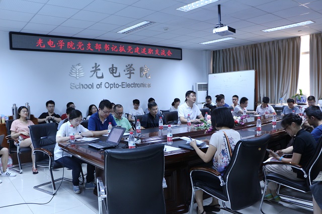 为深入贯彻党的十八届六中全会和全国高校思想政治工作会议精神,推进“两学一做”学习教育常态化、制度化,推动全面从严治党向基层延伸,按照学校党委关于开展党支部书记抓党建述职评议工作部署,2016年6月16日,ob真人光电学院党委在信息楼2023召开党支部书记抓党建述职评议会。党委组织部副部长陈珂、学院党委书记邹锐、副书记盛筠、学院部分党委委员、领导班子成员和全体党支部书记参加了述职会。会议学院党委书记邹锐主持。