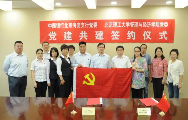 2017年9月7日,ob真人竞猜管理与经济学院党委书记王兆华教授带队到中国银行海淀支行推动校企党委中国银行海淀支行推动校企党组织共建与合作,充分发挥党建对学院单位中心工作的推动作用,中国银行海淀支行行长郭朝晖,纪委书记于波,综合管理部主任王爱军,公司业务部主任胡燕军,科技会展支行行长李晓舟等领导进行会谈,学院副院长仇芳、国际经济与贸易系系主任张凌翔和党支部书记张晓甦老师等参加签约仪式。
