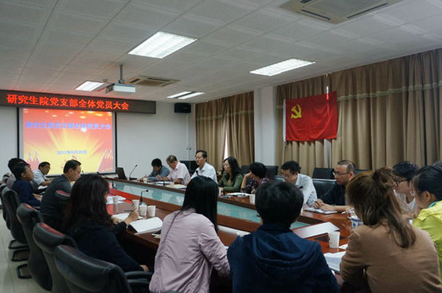 9月29日下午,研究生院党支部召开全体党员大会,纪念毛泽东同志《实践论》、《矛盾论》发表80周年和学习习近平总书记系列讲话精神。